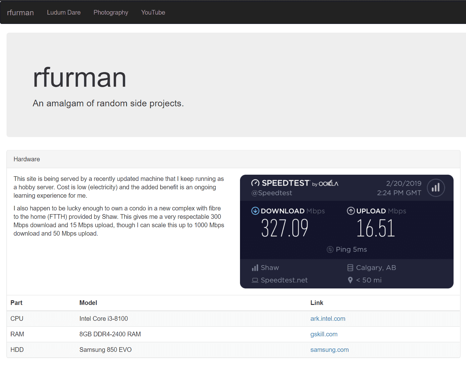 Anytime I work on some interesting personal devops project I will write about it. For example I plan on getting Application Management Panel (AMP) to run along side this personal website. I also recently acquired an extra machine I'd like to use with my current server to make a personal hobby server farm. Stay tuned for updates!
